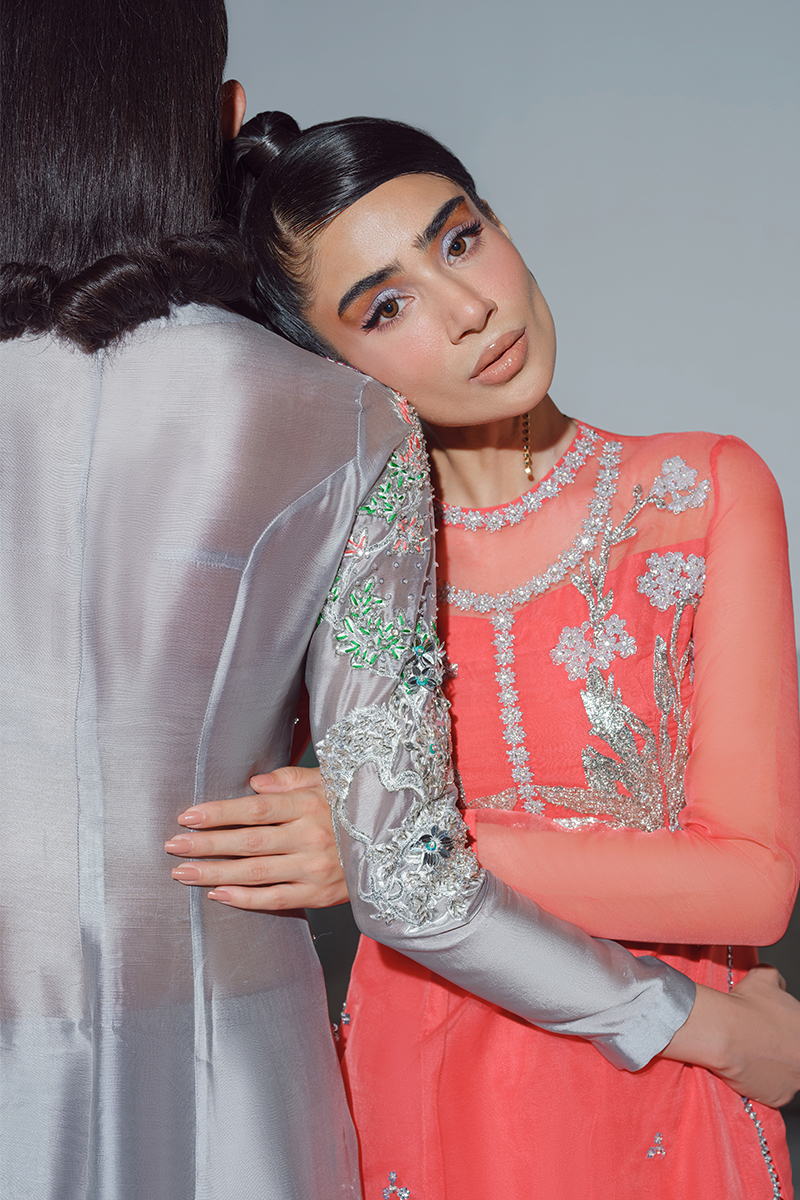 Introducing the captivating "Disco Flame" ensemble, a true display of burning flare and outstanding fashion. This breathtaking pair is expertly put together with a brilliant coral pink hue that is sure to turn heads. The piece is made up of top-notch organza and lush Thai silk fabrics, lending it a luxurious and regal look. The ensemble consists of a nicely designed shirt teamed with trendy cropped bootcut trousers that provide a modern touch to the whole look.