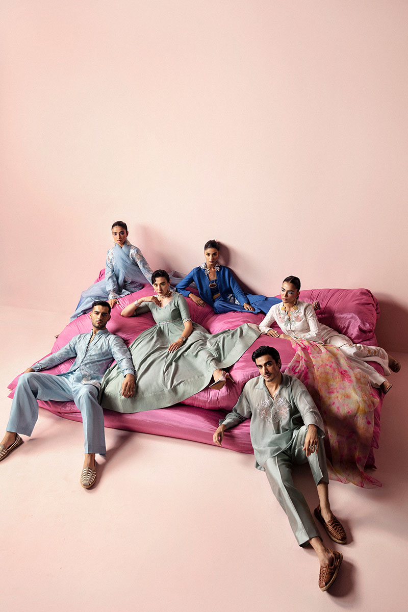 An absolute elegant ensemble in a captivating dull sage green. It features a cotton net peshwas with intricate embroidery on the neckline and sleeves, paired with an organza dupatta adorned with exquisite patchwork motifs and scalloped edges.