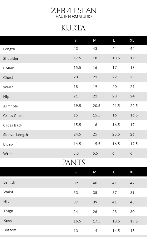 Includes: Embroidered Kurta, Relax fit Trouser